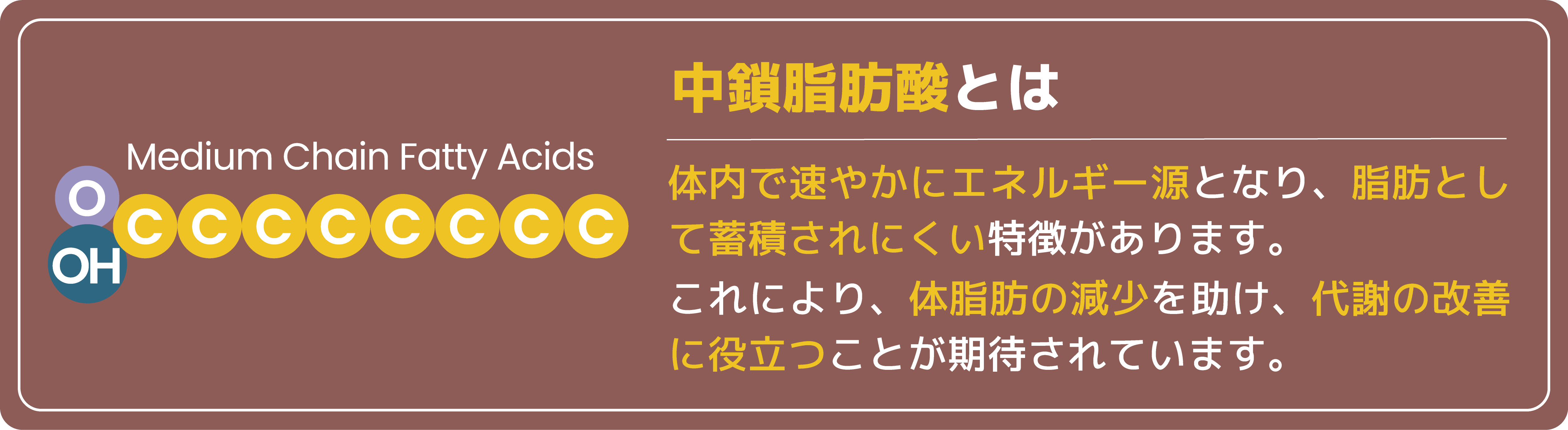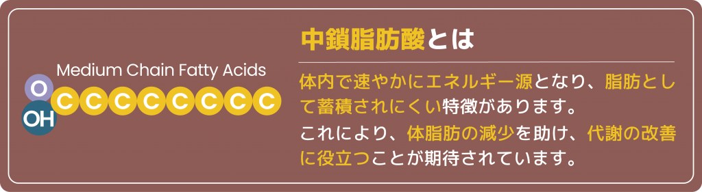 こうした代謝の問題に対して注目されているのが、中鎖脂肪酸(MCT)です。