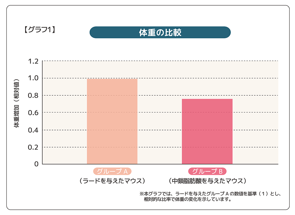 これらの結果から、中鎖脂肪酸は代謝のバランスに良い影響を与える可能性が示唆されました。