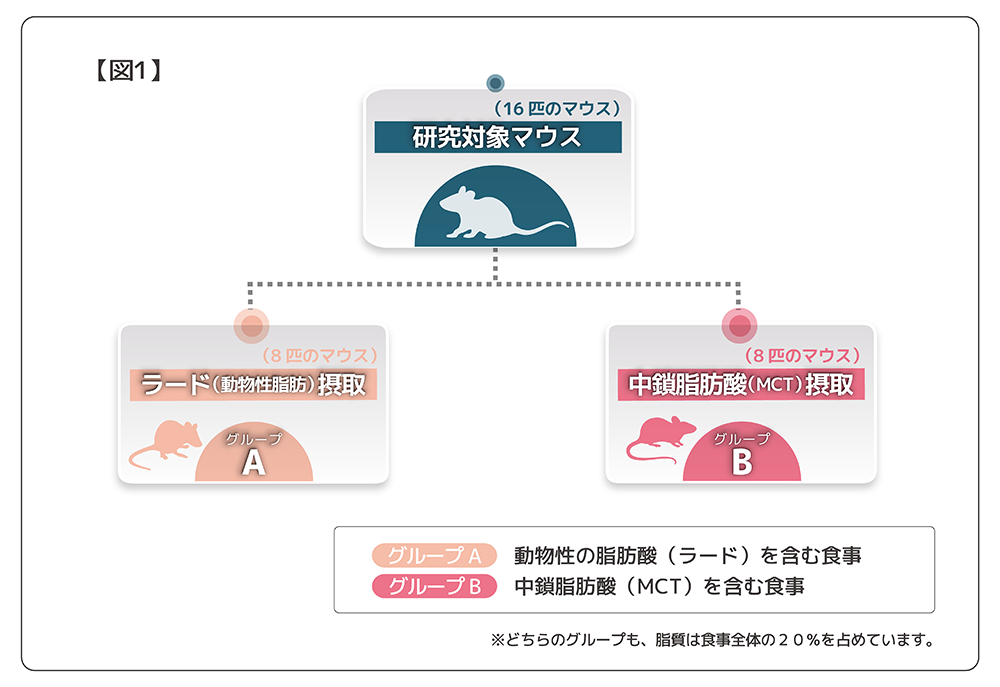 グループBには中鎖脂肪酸(MCT)を含む食事を与えました。(図1参照)